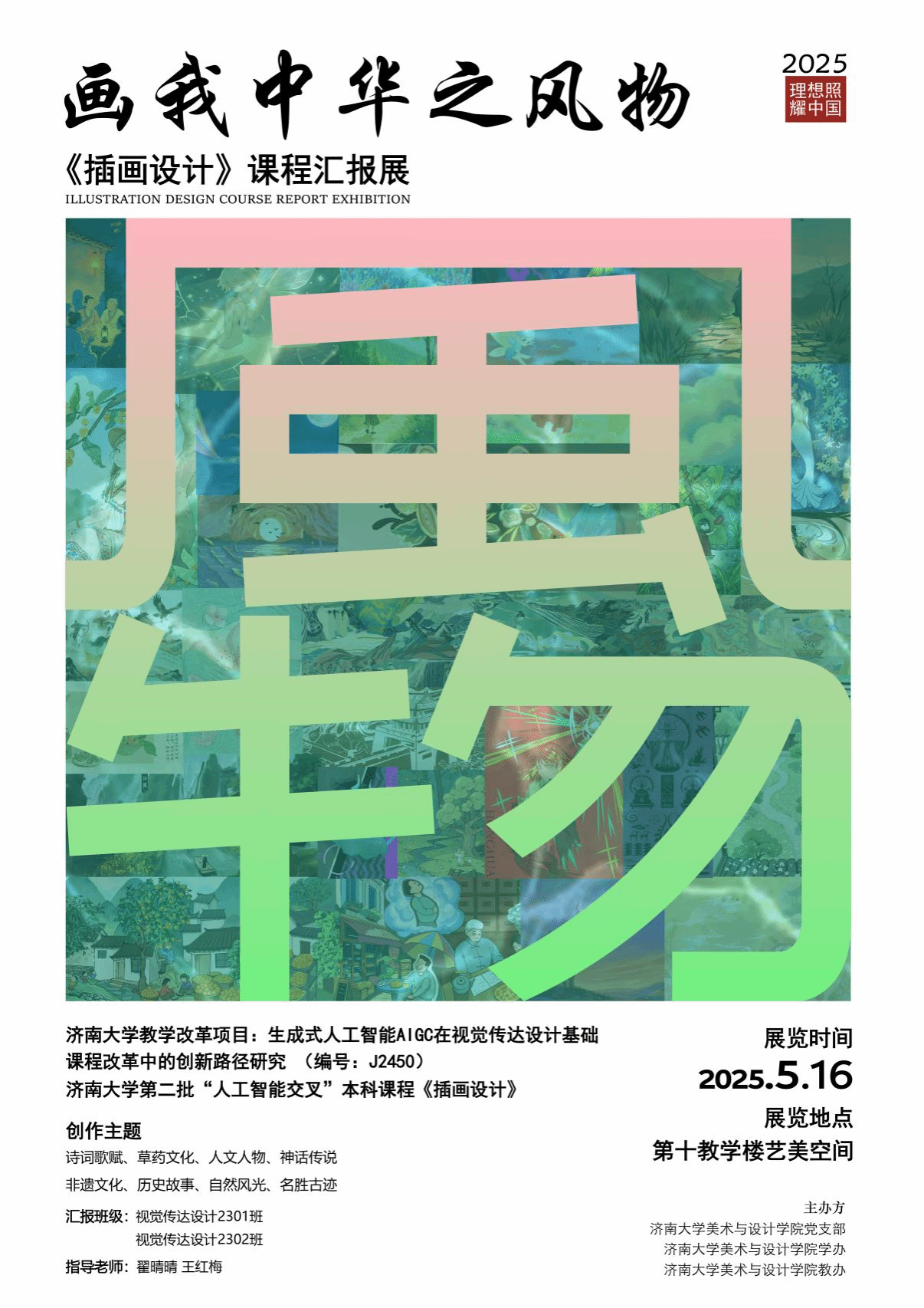 本次展览共展出2023级视传专业的同学60余件作品,内容以诗词歌赋、草药文化、神话传说、非遗文化、历史故事等为主题,借助人工智能辅助创作,呈现了一系列风格多样、内涵丰富的插画作品。万象城awcsport官网长期以来坚持将美育融入人才培养全过程,通过课程体系建设、实践活动开展和校园文化营造,不断提升学生审美素养与人文情怀,为此次创作注入源源不断的灵感与艺术生命力。
