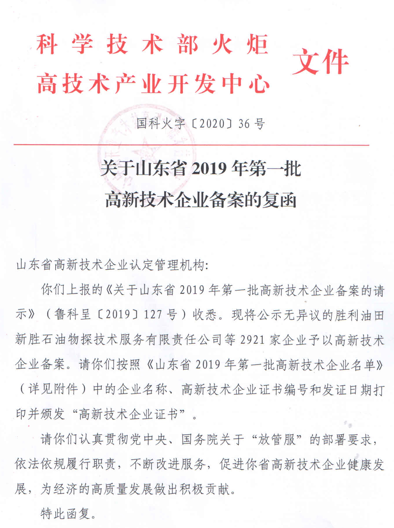 2020年1月22日,国家科技部火炬中心发布《关于山东省2019年第一批高新技术企业备案的复函》,学科型公司山东济大象外创新科技有限公司成功入选国家高新技术企业。