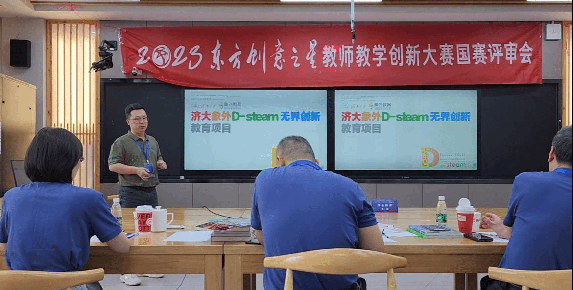 团队“基于事理学理论的社会美育——济大象外D-steam无界创新教育项目”,从中华传统文化中汲取思想精华,结合信息时代学习的特点,通过对国际"STEAM"课程的本土化改良创新,首创"D-STEAM"以设计(Design)引领科学(Science)技术(Technology)工程(Engineering)艺术(Arts)数学(Mathematics)多学科融合创新的通识教育体系。该体系专注于全生命周期创新思维开发和创新能力培养,培养受众用跨界无界思维进行系统的体验、感悟、分析、认知、表达和创造,最终综合提升个人创造能力和多元智能。
