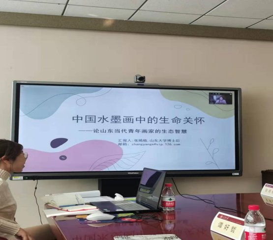 在上午主题发言中,张嫣格老师以“生态艺术”议题提出主题性发言。在会议中发言的题目是《中国水墨画中的生命关怀——论山东当代青年画家的生态智慧》,她在会议中谈到,在山东青年画家的笔中,自然之物不仅仅“悦心悦意”“悦志悦神”,更是被看做对生命“美”的救赎,潜藏着丰厚的“诗化哲学”。画家欣然把这些大自然之物象看做是人与世界的某种隐喻,一种与自然界不断较量后的和谐共生。这不仅是自我真性情的表达,也是人与自然的相互共生,升华为“以笔墨之自然,合乎天地之自然”。