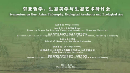 2021年12月18日,万象城官网产品设计系教师、山东大学博士后张嫣格老师参加了由文学院文艺美学研究中心、韩国成均馆大学儒学东洋韩国哲学系BK21教育研究团、韩国成均馆大学东洋哲学、文化研究所联合举办的“东亚哲学、生态美学与生态艺术”研讨会,采用线下线上结合的方式召开。开幕式由文学院文艺美学研究中心副主任程相占教授主持,文艺美学研究中心主任谭好哲教授、韩国成均馆大学东洋哲学、文化研究所所长白英宣教授出席会议并致辞,文艺美学研究中心名誉主任曾繁仁教授、韩国成均馆大学儒学大学长辛正根教授为本次会议作主旨发言,与会的还有来自文艺美学研究中心与韩国成均馆大学东洋哲学系的专家学者。