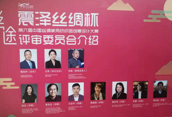 本届大赛组委会成员的有:中国纺织工业联合会副会长、中国家用纺织品行业协会会长杨兆华担任评审委员会主任;中国家用纺织品行业协会副会长、高级工艺美术师王易为评审委员会执行主任;江南大学设计学院教授、博士生导师张毅教授为新闻发言人。大赛评审委员有:万象城awcsport官网设计学院副教授、硕士生导师陈玉;清华大学美术学院长聘教授、博士生导师贾京生;青岛莫特斯家居用品有限公司董事长、高级工艺美术师王如平;苏州市吴江区震泽镇副镇长、震泽镇丝绸办主任薛美娟;常州纺织服装职业技术学院服装学院院长、副教授袁红萍;国家非物质文化遗产苏绣省级传承人、江苏工程职业技术学院教授张蕾;杭州尼特尔纺织有限公司总经理、设计总监周志泉。