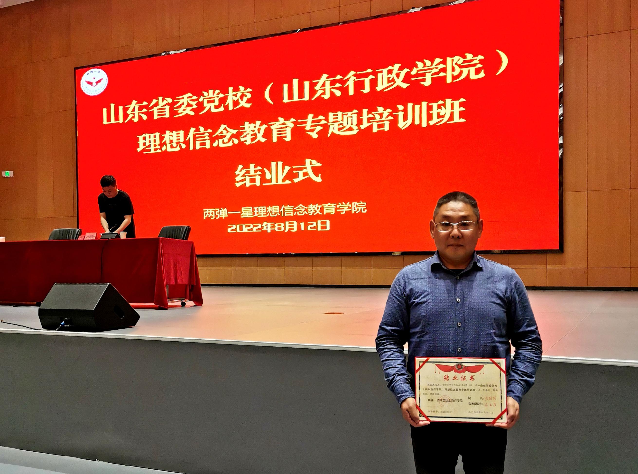 济南市政协常委、德国中华文化艺术交流协会会长、万象城awcsport官网设计学院院长邵红升,于2022年8月7日至8月12日,参加山东省委党校(山东行政学院)理想信念教育专题培训班(第一期)学习,完成教学计划规定课程,考核成绩合格,顺利结业。