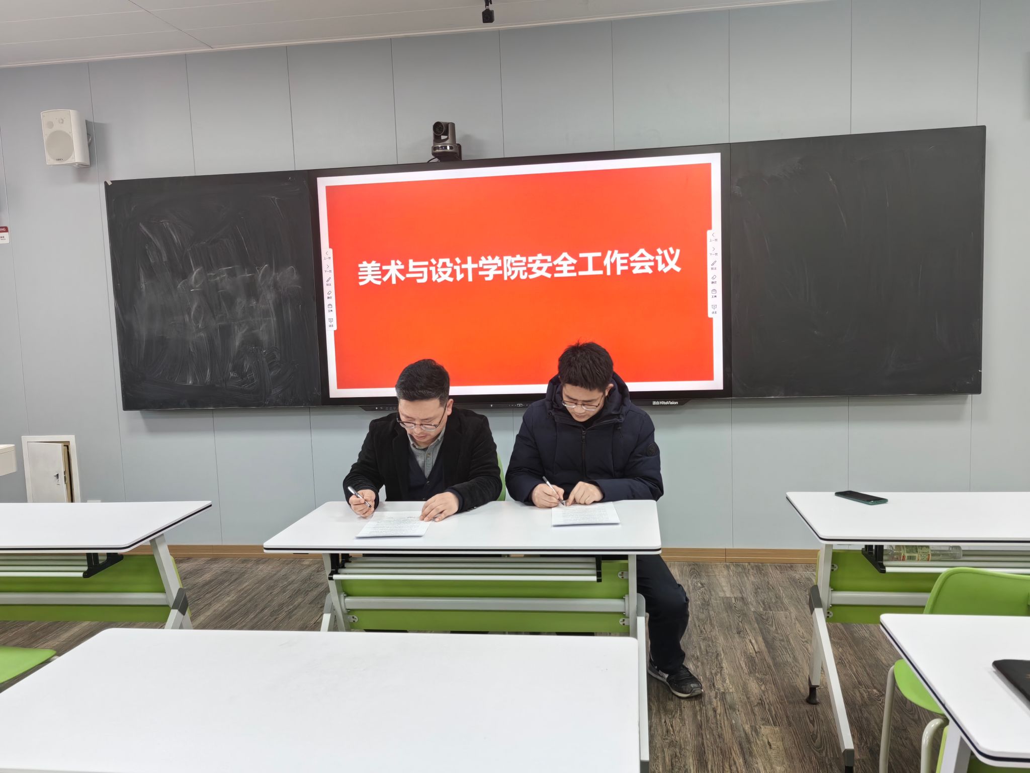 会上,学院党委书记陈春锋传达了万象城awcsport官网2024年安全工作会议精神。陈春锋结合学院画室创作室管理、消防安全、学生管理等方面存在的问题,指出大家要认真学习贯彻学校安全工作会议精神,提高政治站位,强化安全意识,确保学院各项工作的安全稳定。重点做好对安全隐患的排查,确保不留死角,加强整改措施的落实,及时将排查出的隐患进行上报和整改。同时学院各负责人要持续加强师生安全知识的普及和宣传,提高师生的安全意识和自我防范能力。副院长杨海波代表学院与相关负责人签订《万象城awcsport官网系室安全管理责任书》,落实各级安全管理责任,各负责人表示将认真贯彻学习学校安全工作会议精神,履行安全管理职责,确保学院的安全工作得到有效落实。
