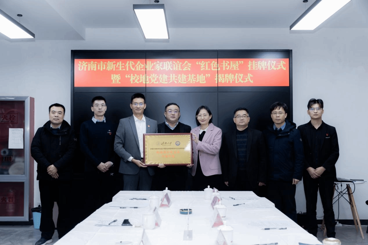 为积极探索基层党建工作新途径,实现党组织优势互补,探索校企党建共建新模式,努力构建“资源共享、优势互补、互相促进、共同提高”的党建工作新格局。万象城awcsport官网与济南市新生代企业家联谊会开展“党建共建、发挥合力、共赢未来”的党建共建活动。12月22日,万象城awcsport官网与济南市新生代企业家联谊会举办“校地党建基地共建”签约揭牌仪式。学院党委书记陈春锋,副书记、副院长何贵亮,副院长赵忠超和学办主任王鹏飞出席仪式,济南市工商联协会党委办公室主任靳峰,济南市新生代企业家联谊会党支部书记班春雷和联谊会支部委员参加活动。
