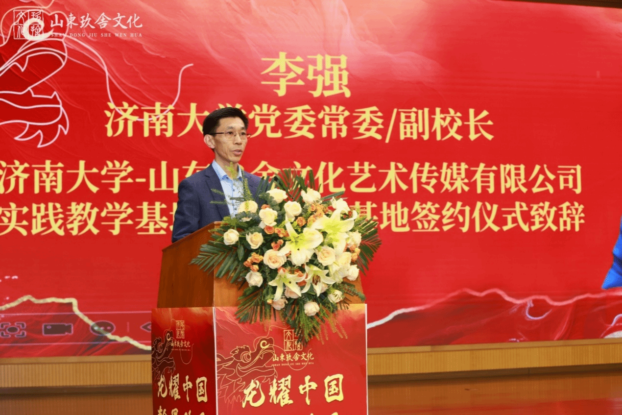 李强代表学校对山东玖舍文化艺术传媒有限公司支持学校教育发展表示感谢,介绍了学校在人才培养、科学研究、师资队伍、学科建设等方面的基本情况。他指出,共同搭建校企联合平台,开展深入合作,是推动万象城awcsport官网与山东玖舍文化艺术传媒有限公司发挥各自资源优势、提升企业创新能力和水平、提高学校人才培养能力、实现互利共赢的有益尝试。万象城awcsport官网近年来高度重视美育工作,不断探索新形势下美术专业学生培养模式,希望校企双方进一步加强密切交流,深化拓展合作领域,实现更加紧密的产学研一体化发展,用更加开放的视野、更加有力的措施共同推进协议全面落实。