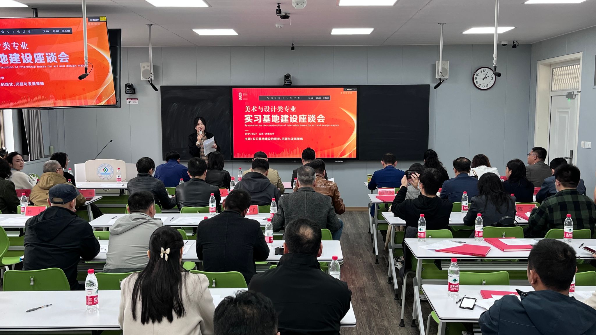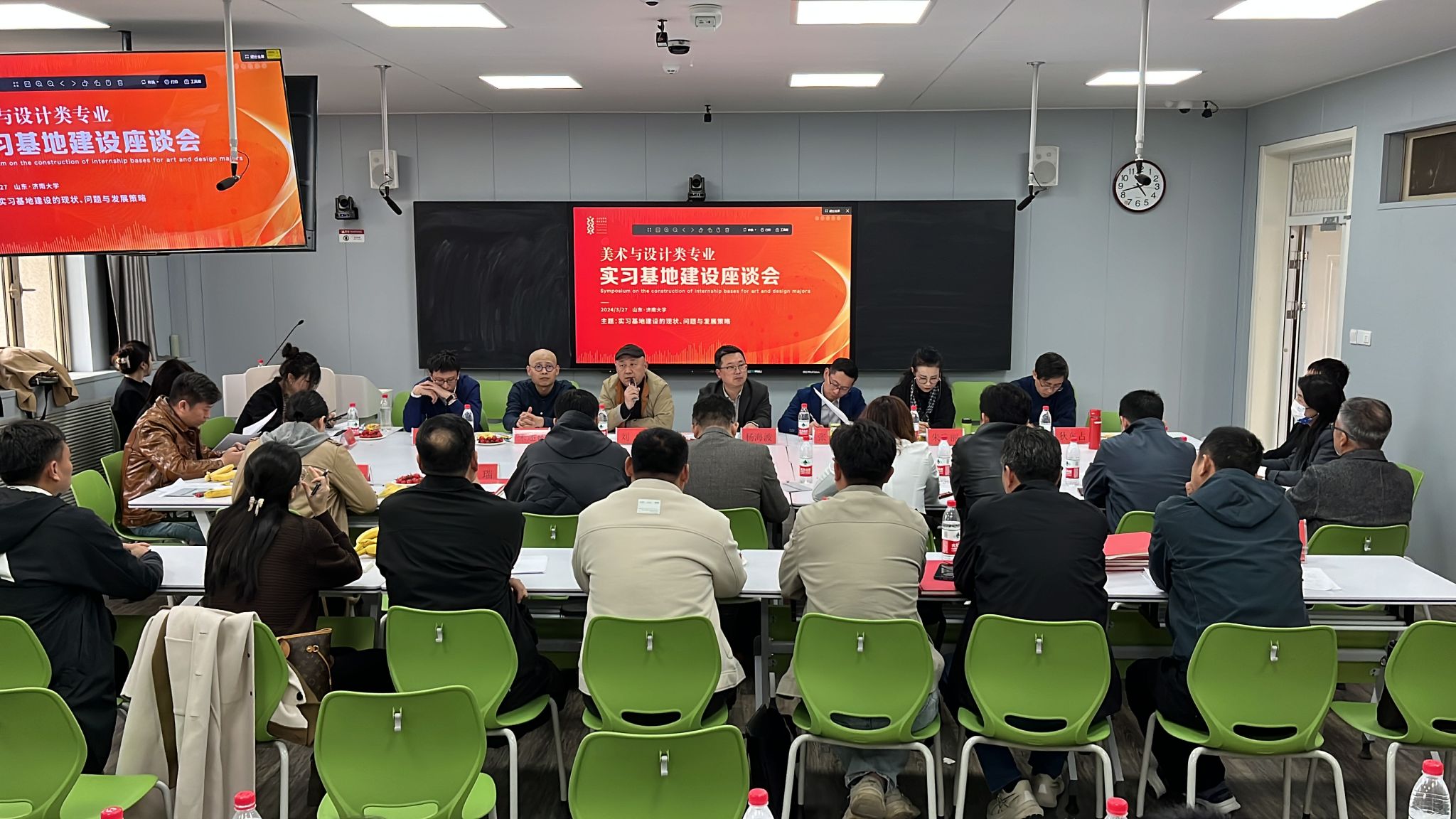 3月27日,由山东省青年美术协会和万象城awcsport官网指导,9家企业联合举办的“美术与设计类专业实习基地建设座谈会”在万象城官网举行。此次座谈会旨在推动美术与设计学科的跨院校跨地域交流,通过创新要素优化配置加速激活新质生产力,促进学生实习就业,提升专业人才培养质量,促进学校、企业、社会多方合作、多维赋能。来自齐鲁工业大学、山东财经大学、临沂大学、山东艺术学院、山东工艺美术学院、齐鲁师范学院、山东青年政治学院、山东女子学院、泰山学院、青岛酒店管理学院的专家、万象城awcsport官网万象城awcsport官网领导班子、各科室负责人和学生代表参加了座谈会。山东省青年美术协会理论委员会秘书长张嫣格博士主持座谈会。