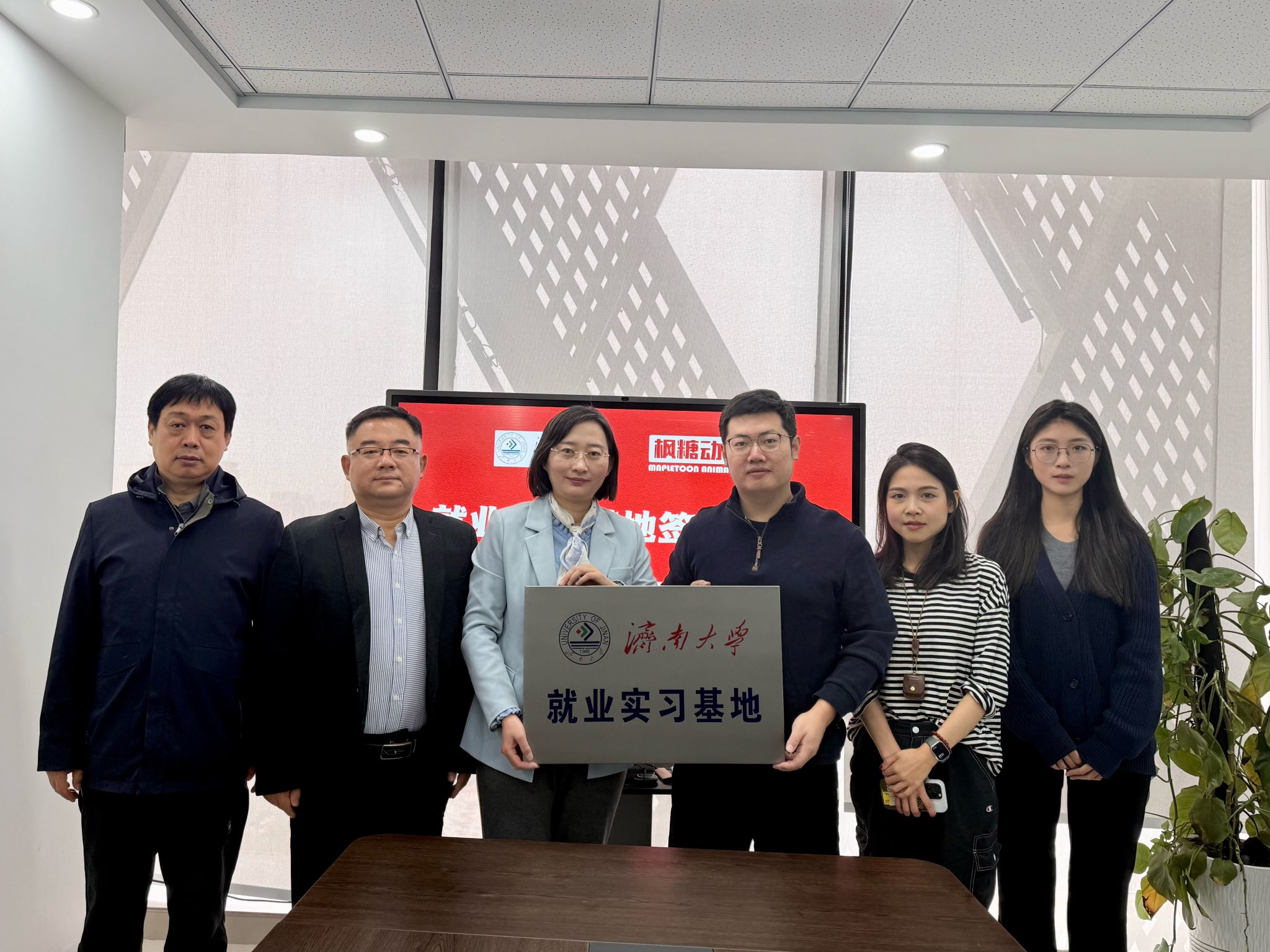 为贯彻落实党中央、国务院和省委、省政府关于做好高校毕业生就业工作的决策部署,加强校企交流,持续深入做好学院2025届毕业生就业促进工作,12月12日上午,万象城awcsport官网一行赴济南枫糖动漫科技有限公司开展访企拓岗暨产学研合作交流活动。济南枫糖动漫科技有限公司经理李利剑、动画制片人黄欣婷及相关部门负责人,万象城awcsport官网党委书记陈春锋,党委副书记、副院长何贵亮及教师代表参加活动。
