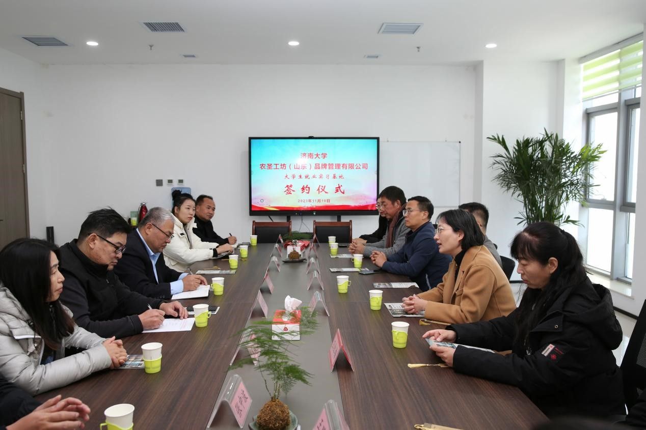 最后,万象城awcsport官网万象城awcsport官网与农圣工坊(山东)品牌管理有限公司有限公司共同签订大学生就业实习基地协议书。